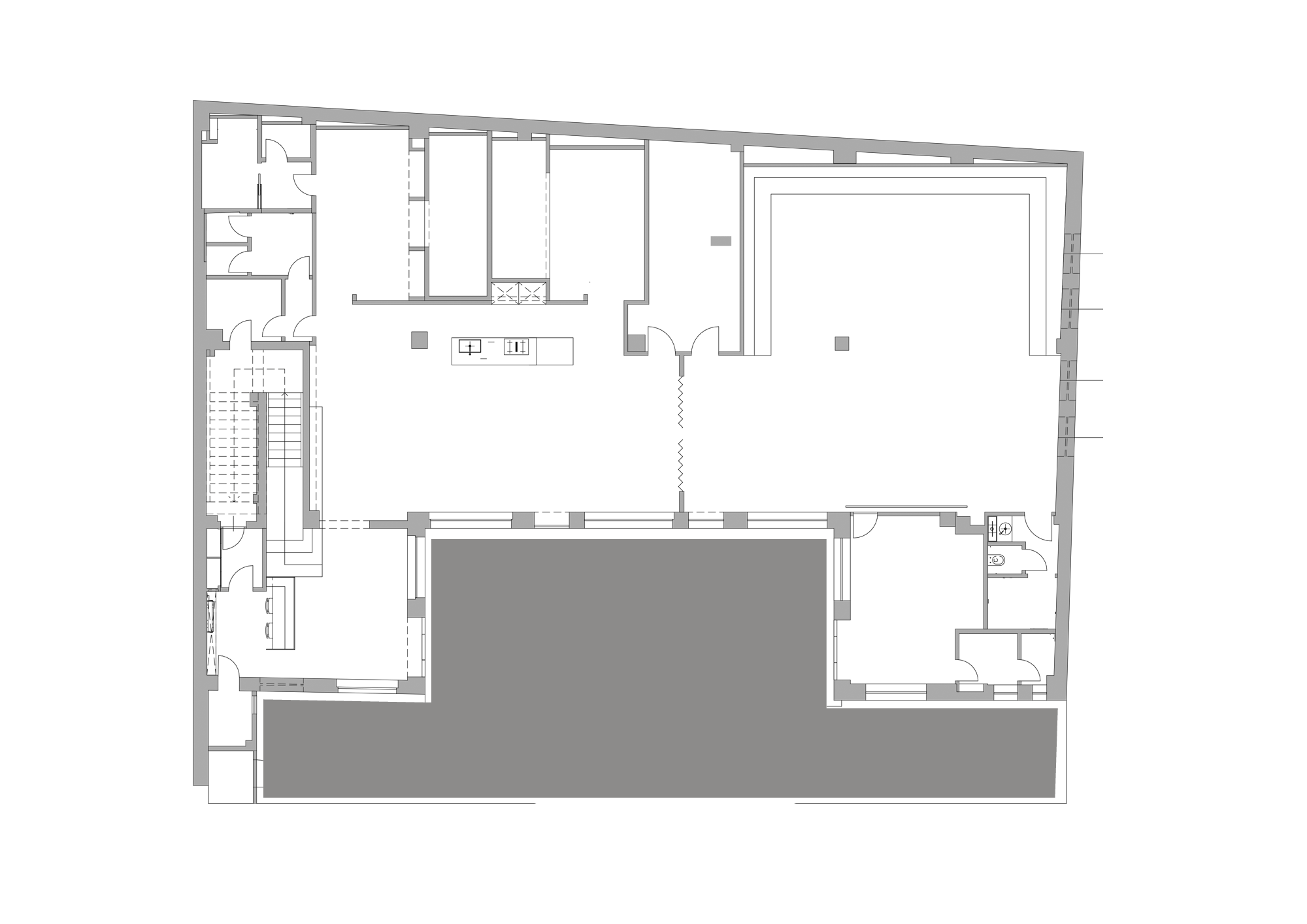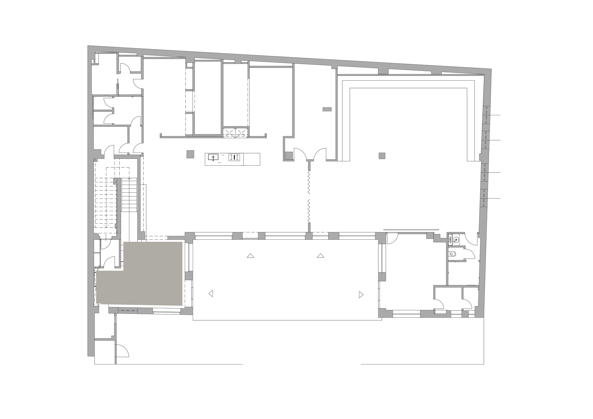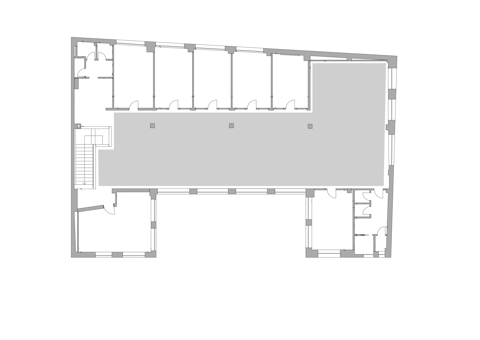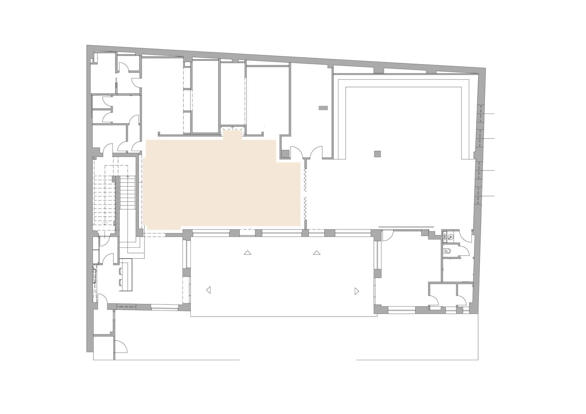 The ground floor houses the main open areas, ideal for installations, product showcases, or gatherings. Its flexible layout and natural light make it adaptable to different setups — from exhibitions and press presentations to private events.